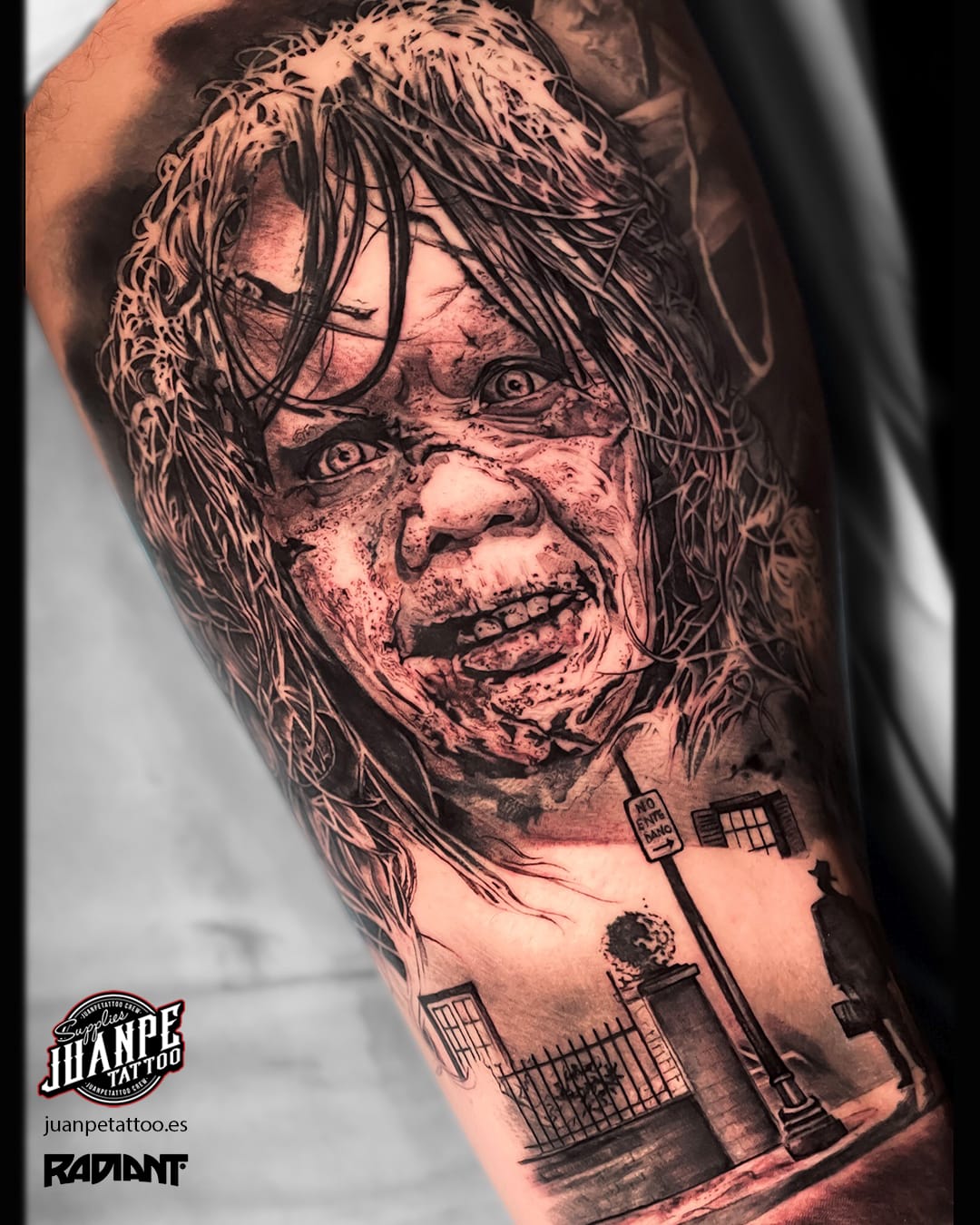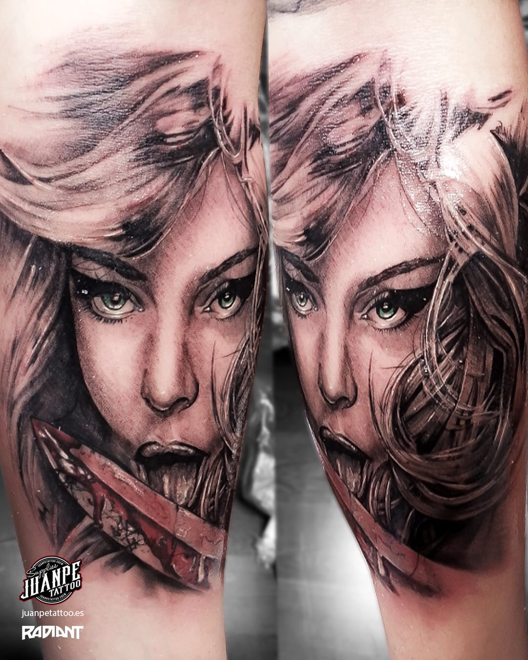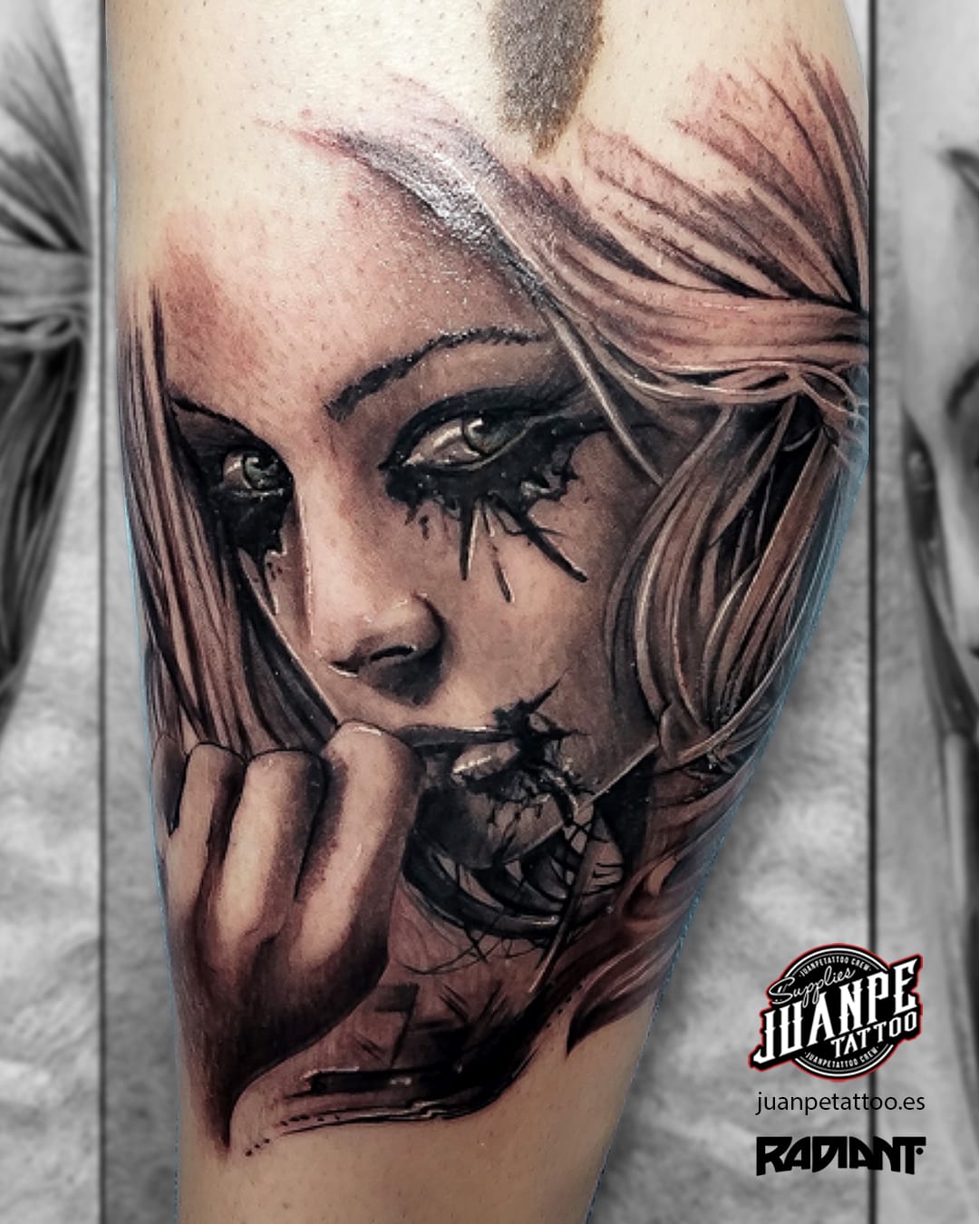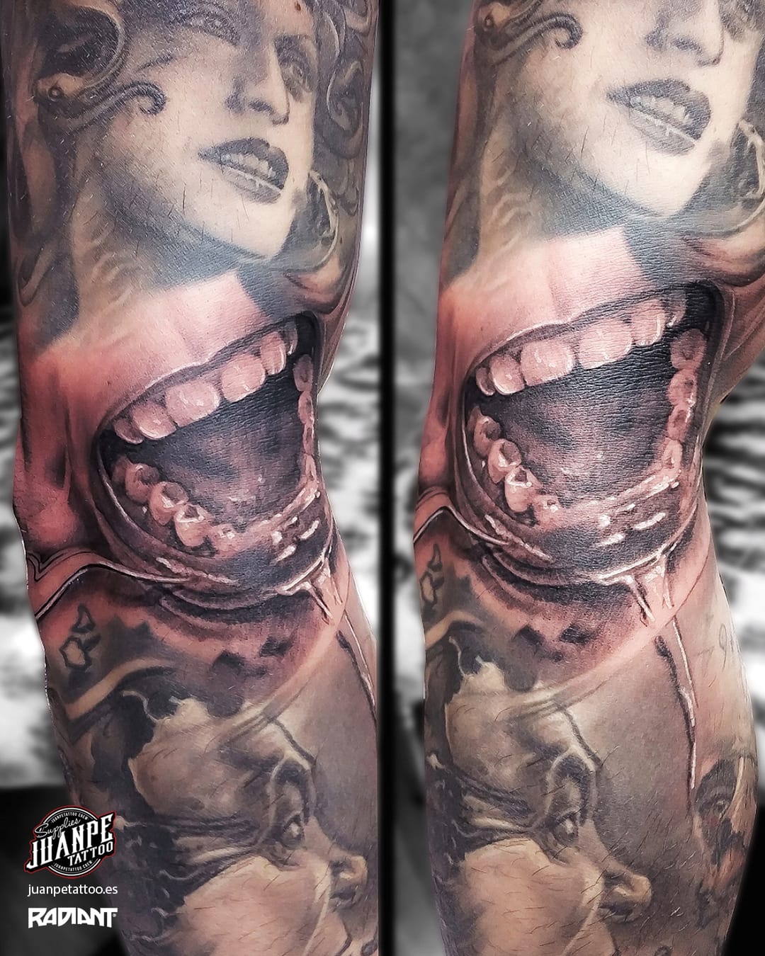 Galería de tatuajes realistas donde hemos agrupado aquellos tatuajes relacionados con el terror, tatuajes de calaveras, o lo que se denomina tatuajes dark por su estilo.