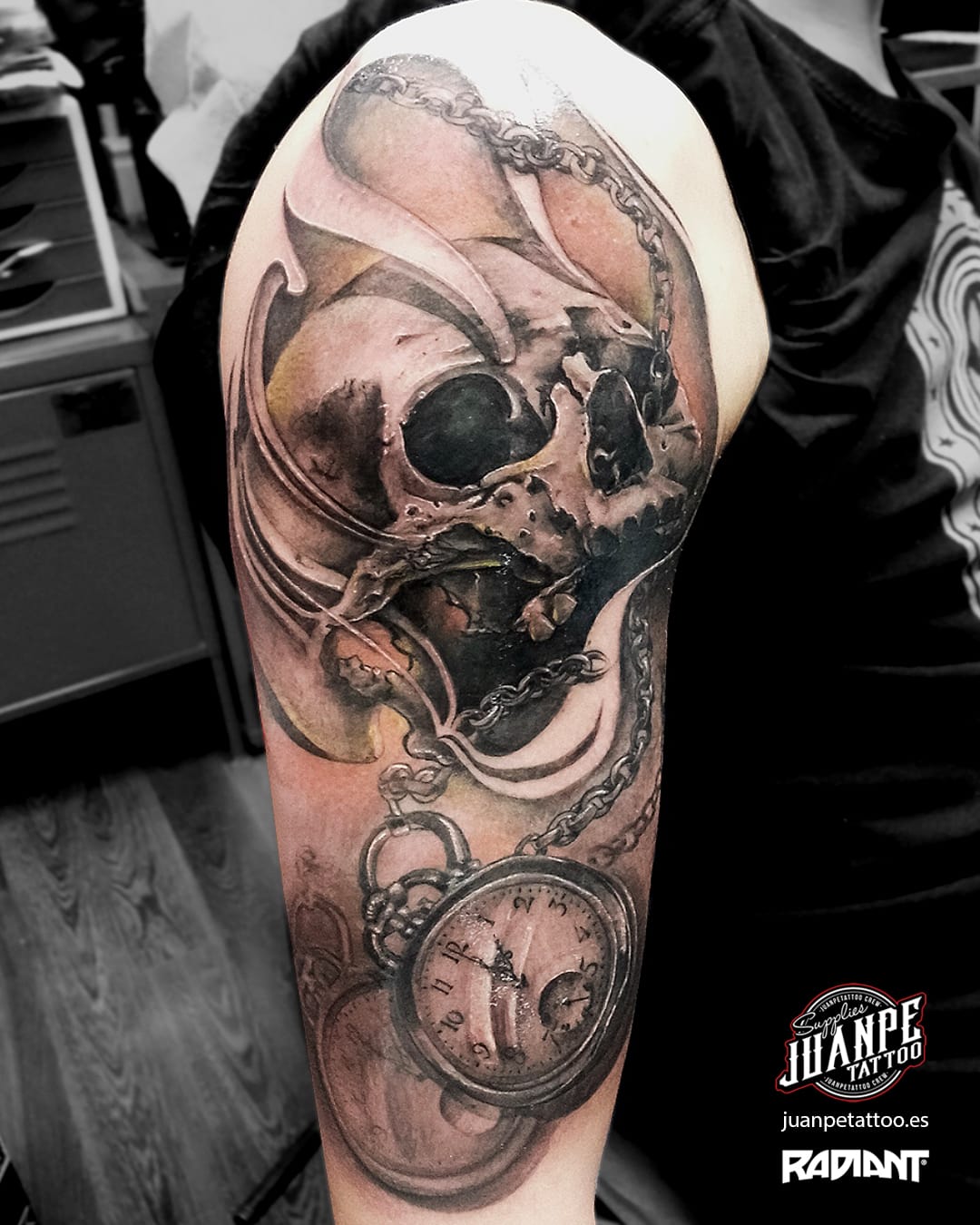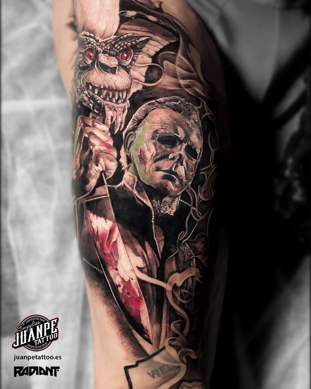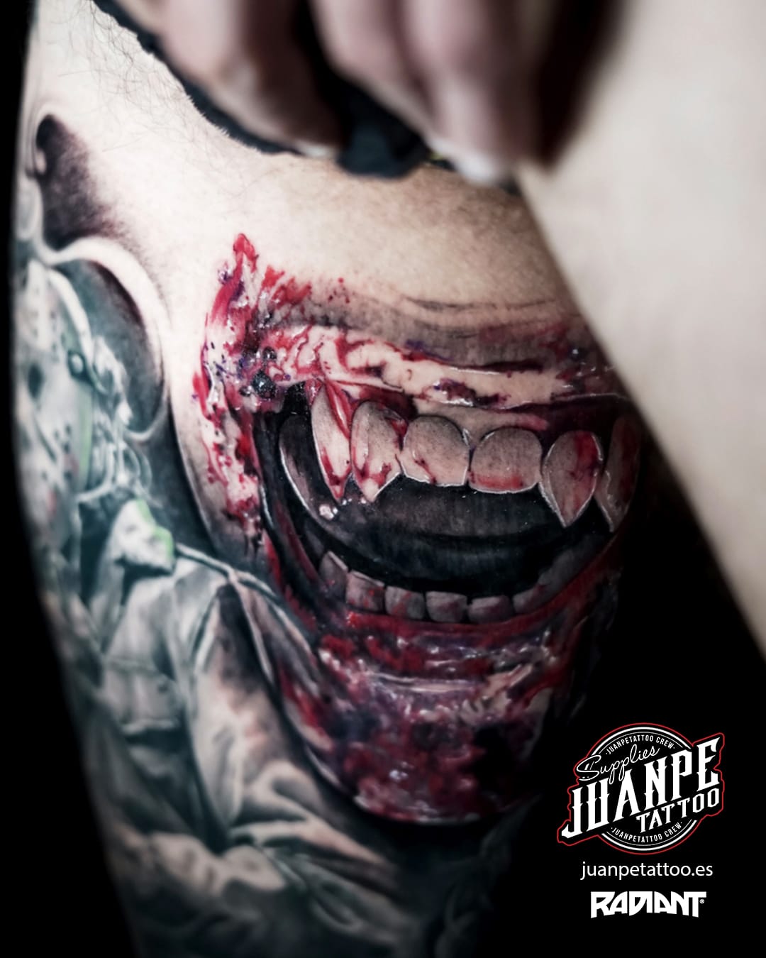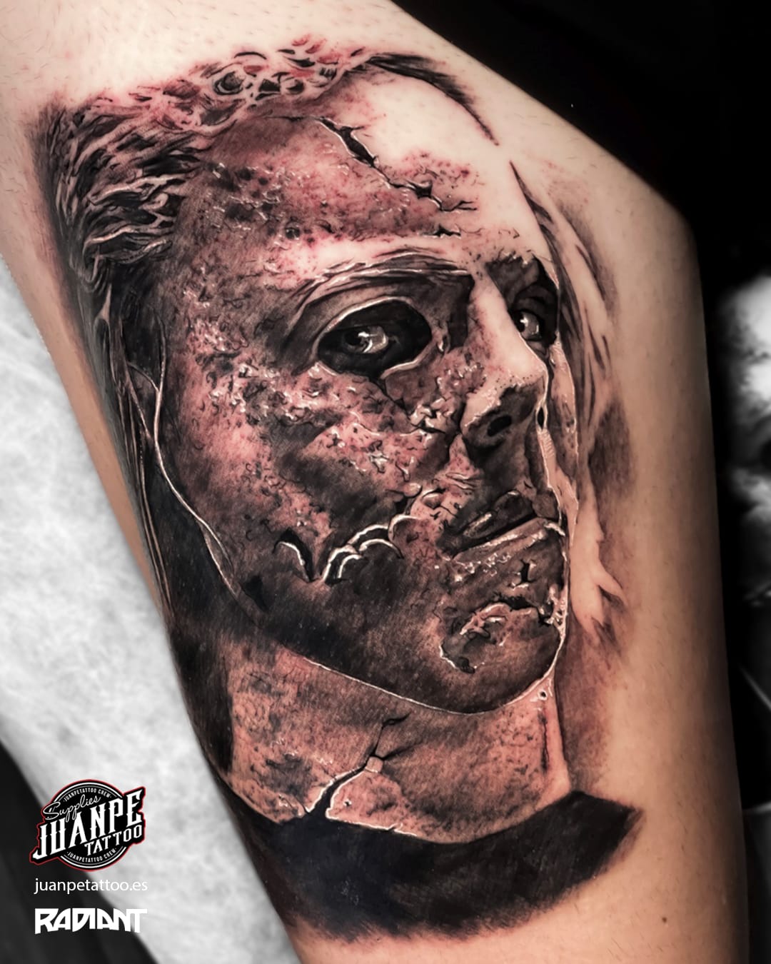Galería de tatuajes realistas donde hemos agrupado aquellos tatuajes relacionados con el terror, tatuajes de calaveras, o lo que se denomina tatuajes dark por su estilo.
