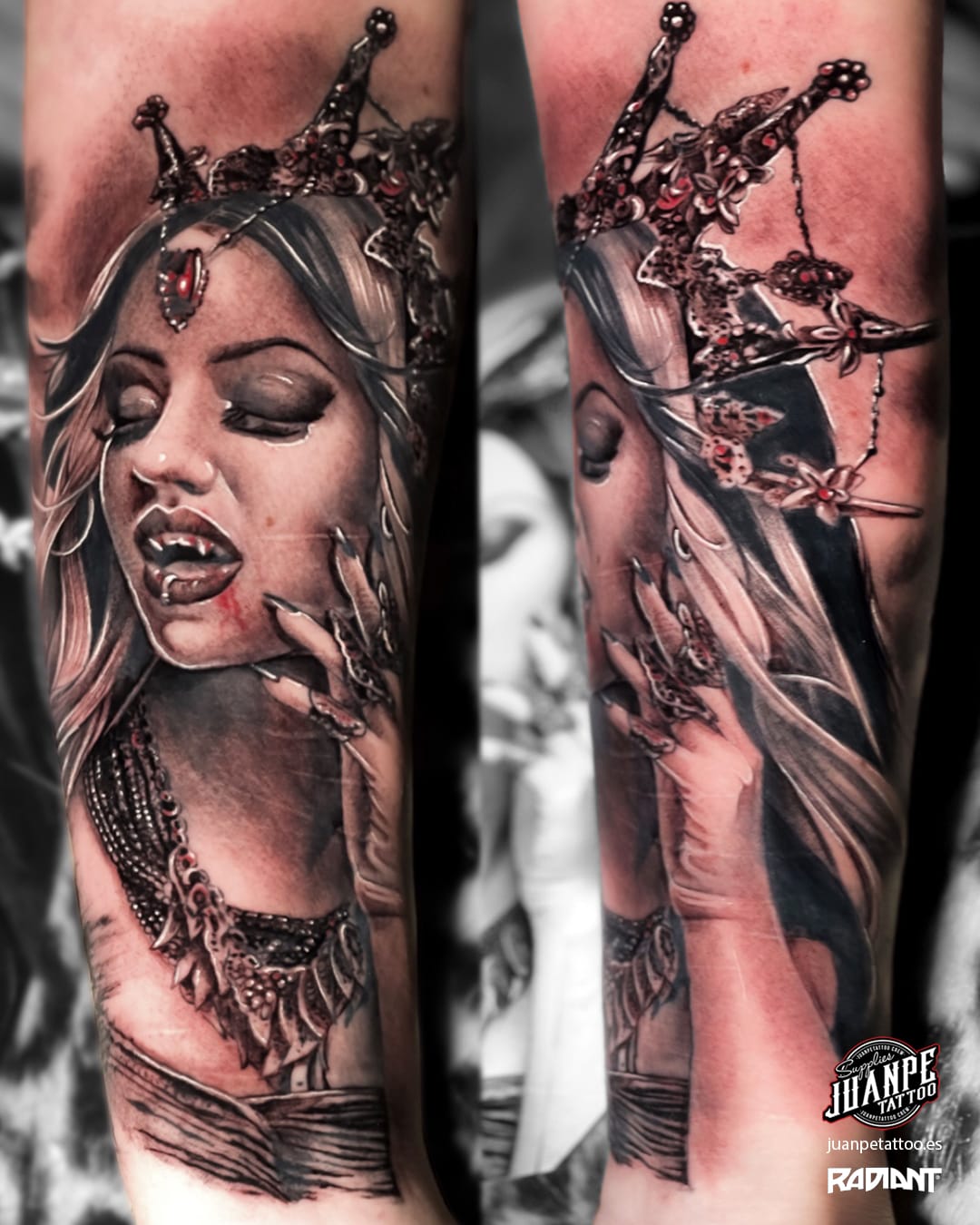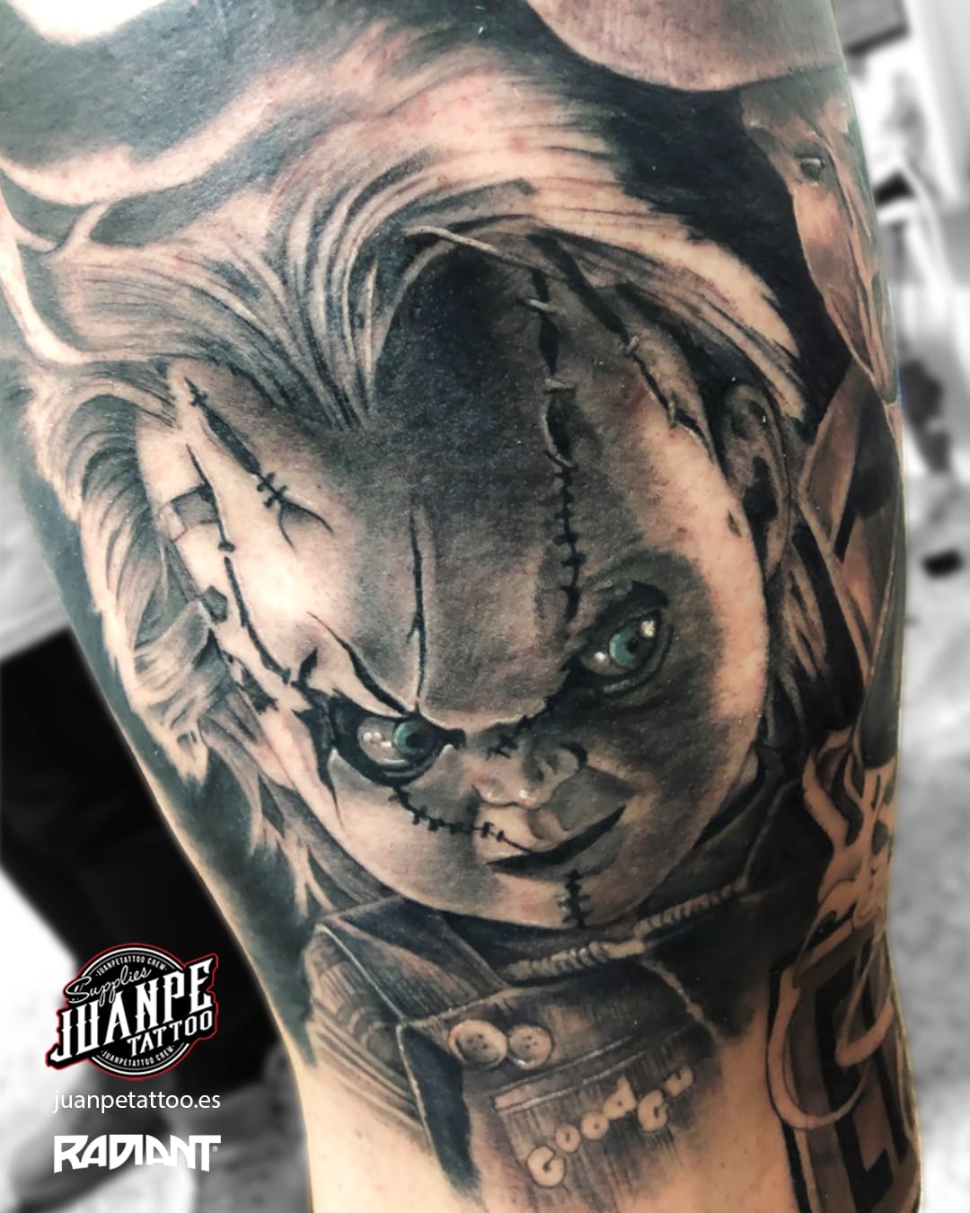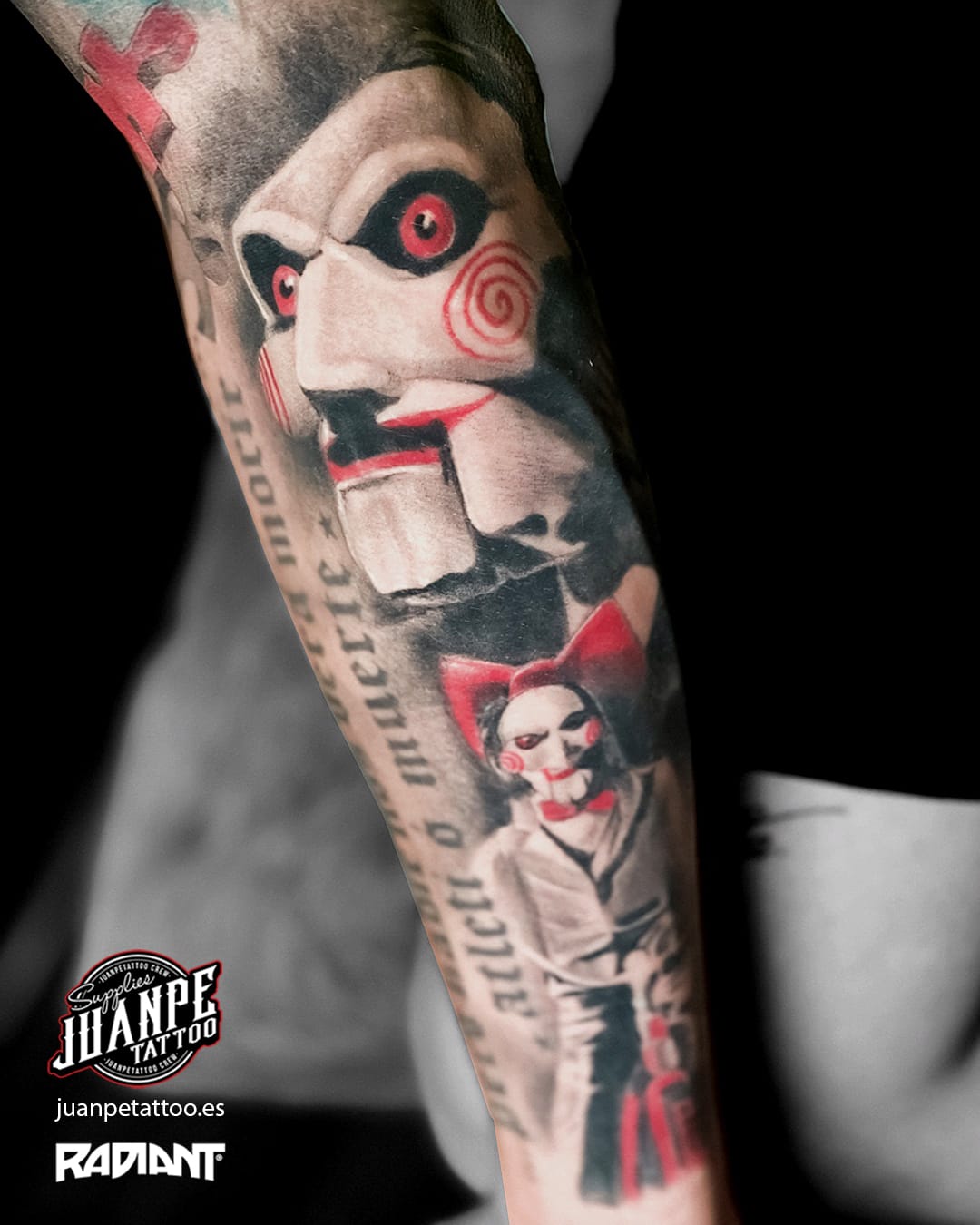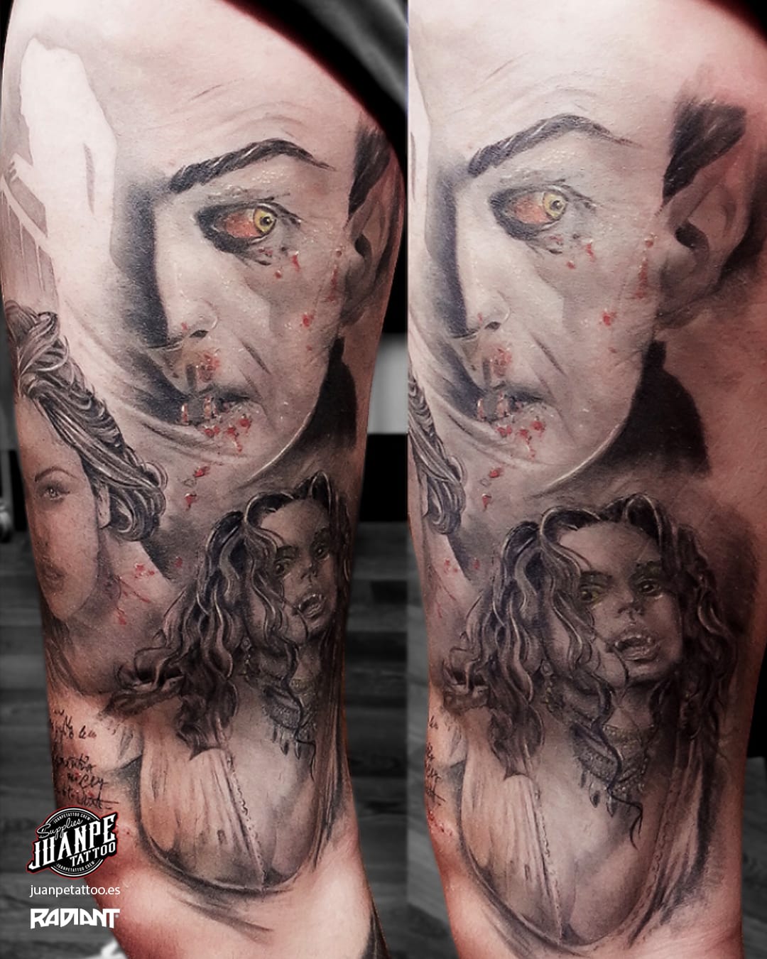 Galería de tatuajes realistas donde hemos agrupado aquellos tatuajes relacionados con el terror, tatuajes de calaveras, o lo que se denomina tatuajes dark por su estilo.