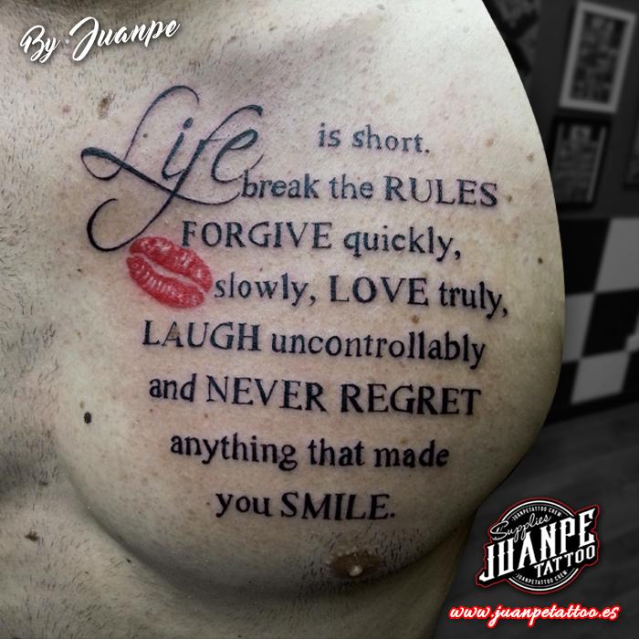 Siempre en nuestros estudios de tatuaje en Madrid recomendamos que siempre verifiquen por su cuenta todas las letras a tatuar, frases y nombres, pedimos que sean ellos quienes nos den la frase etc.